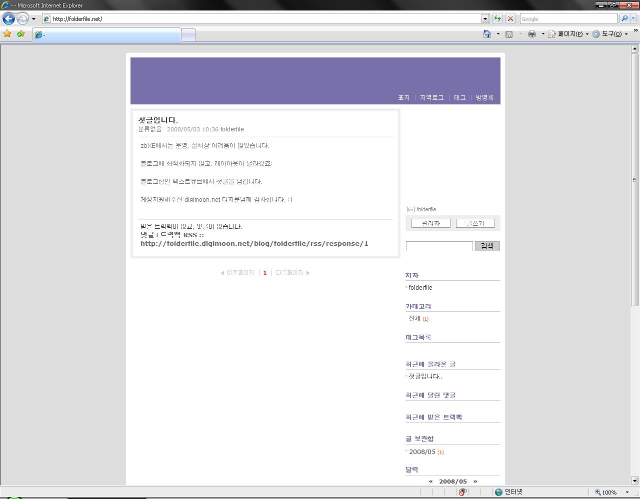 도메인도 포워딩해놨습니다...ㅎㅎ; 저번글이 이상하게 이동되고 또 뼈대가 달라지고 디지문님의 말씀도 따라야 되어서 다시 신고합니다 ^^; (그리고 또 이미지추가기능(에디터)를 이용했더니 이상하게 첨부되서;;;; 소스를 직접 썼습니다...